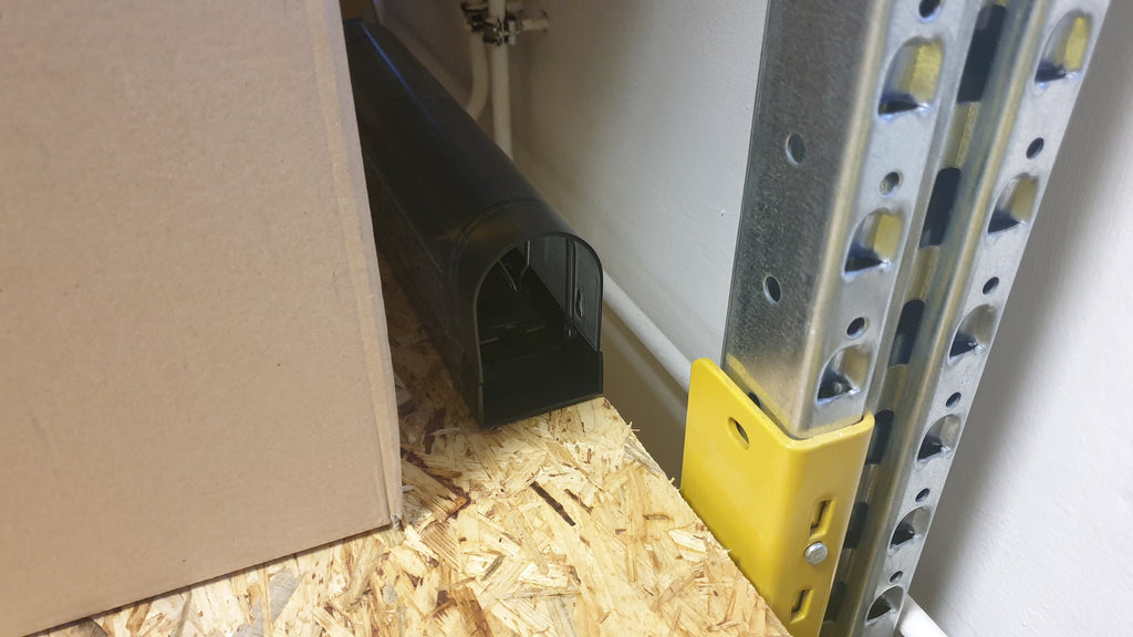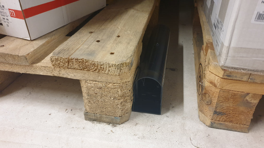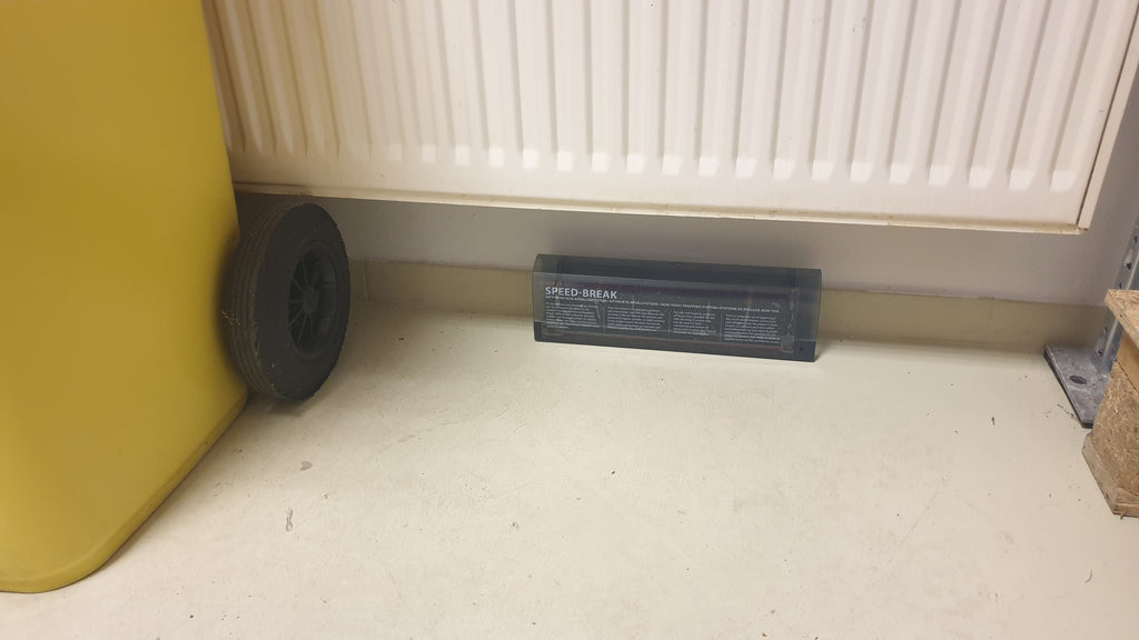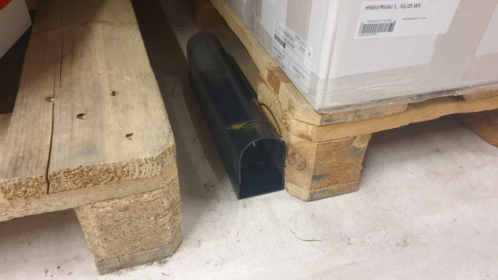 Dank der kompakten Form kann Speed-Break® sowohl am Boden als auch in erhöhten Bereichen wie Palettenregalen oder Kartonstapeln positioniert werden – exakt dort, wo sich Mäuse bevorzugt bewegen.